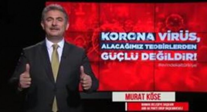 Ankara’daki AK Partili ilçe belediye başkanlarının yer aldığı klipte “Evinde kal” mesajı verildi. Sosyal medyada yayımlanan Klip, Ankara Büyükşehir Belediye (ABB) Meclisi AK Parti Grup Başkanvekili Mamak Belediye Başkanı Murat Köse’nin “Dünyayı etkisi altına alan koronavirüs covid-19’a karşı birlikte mücadele etmeliyiz. Evinde kal Mamak” konuşmasıyla başlıyor.