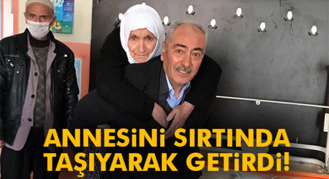 Hakkarili bir vatandaş, annesini sırtından taşıyarak oy kullanmaya getirdi.