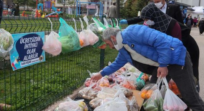 Yenimahalle Belediye Başkanı Fethi Yaşar, kendi bütçesiyle Şentepe Abdurrahman Oğultürk Pazar Yeri esnafından satın aldığı sebze ve meyveleri, stand kurarak ihtiyaç sahiplerine ulaştırdı.