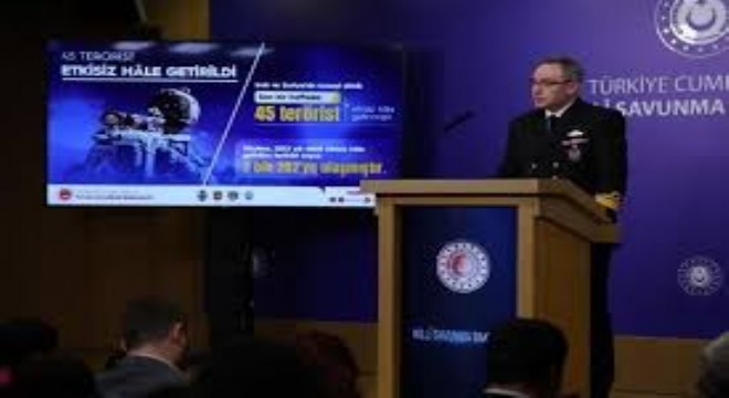 Milli Savunma Bakanlığı, Irak ve Suriye'nin kuzeyinde gerçekleştirilen operasyonlar çerçevesinde son bir hafta içerisinde 45 teröristin etkisiz hale getirildiğini açıkladı. Bakanlığın Basın ve Halkla İlişkiler Müşaviri Tuğamiral Zeki Aktürk, bu konuda düzenlediği basın toplantısında, devletin bekası ve ülkenin güvenliği için çalışmaların azim ve kararlılıkla sürdüğünü ifade etti.