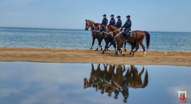 Jandarmanın atlı birliklerinin Sarıyer Gümüşdere plajındaki denetim ve kontrolleri sürüyor.