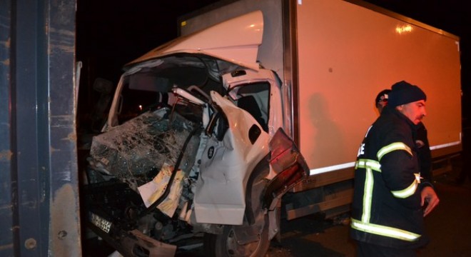 Ankara-Aksaray karayolunda TIR’a arkadan çarpan kamyonetin sürücüsü ve yanındaki kişi, sıkıştığı kabinden itfaiye ekiplerinin yaklaşık yarım saatlik çabası sonucu kurtarıldı.