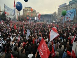 Başbakan Erdoğan ‘CHP iktidara gelirse yardımları kesecek diyor’ sesi kısılmış. Sanki kendi cebinden ödüyor da. Sözüm söz tüm Türkiye’ye yardımlar artacak. Yağmur yağdı bugün, Ankara’yı kirliliklerinden temizledi, hanımlar bahar temizliği yapıyor musunuz? Ayın 30’unda sandığa gideceğiz, el ele omuz omuza bir demokrasi şöleninde oylarımızı altı okun böğrüne basacağız. Mansur Başkan ayın 31’inde inşallah Büyükşehir Belediye Başkanlığı koltuğuna oturacak. Cumhuriyetçiler, Atatürkçüler, vatanseverler, bayrak severler, hepimiz birleşeceğiz. Birleşe birleşe kazanacağız.”