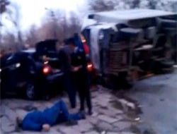 Bir kamyonun devrildiği kazanın ardından amatör kameranın kaydettiği görüntülerde araç içinde sıkışan bir kazazedenin kurtarılmayı bekleyişi görülüyor. Olay yerine gelen 112 Acil Servis ekipleri, bir yaralının kopan parmağını arıyor.