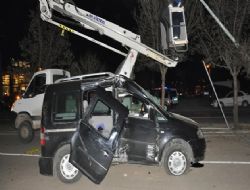 ANKARA GAZETESİ / Kırıkkale’de önüne çıkan köpeğe çarpmamak için manevra yapan sürücü, aydınlatma direğine çarptı.