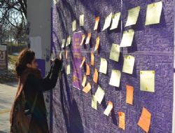 Eğitim-Sen’li kadınlar dün, kadına yönelik şiddete dikkat çekmek amacıyla 2 yıl önce Hacettepe Üniversitesi’nin Beytepe Kampüsü’ne yaptıkları mor duvar önünde toplandı. Hacettepeli öğrencilerin de yer aldığı buluşmada Eğitim-Sen’li kadınlar, kasım ayında 2 kez saldırıya uğrayan ve zarar gören mor duvarı, yeniden onardı. Öte yandan, 10 Ekim’deki terör saldırısında hayatını kaybeden Hacettepe öğrencisi Şebnem Yurtman’ın adının verildiği ‘Kadınlar Meydanı’ tabelası da yenilendi.