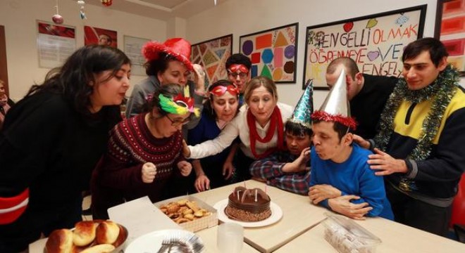 Öğretmenleri ve velileriyle pasta kesen hafif mental, down sendromlu ve otistik zihinsel engelli grubundan kursiyerler, kendi hazırladıkları el emeği ürünleri de partiye katılan misafirlere hediye etti. Özgürleşen Eller Atölyesi’nde haftanın dört günü yaşıtlarıyla eğitim alan engelliler, hem keyifli vakit geçiriyor hem de yeni beceriler edinerek hayata tutunuyor.