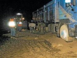 Kamyon çamura saplandı