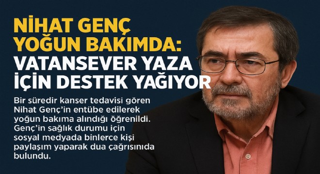 Bir süredir kanser tedavisi gören gazeteci-yazar Nihat Genç’in entübe edilerek yoğun bakıma alındığı öğrenildi. Genç’in sağlık durumu sosyal medyada büyük yankı uyandırdı. Binlerce kişi, paylaşım yaparak dua çağrısında bulundu.