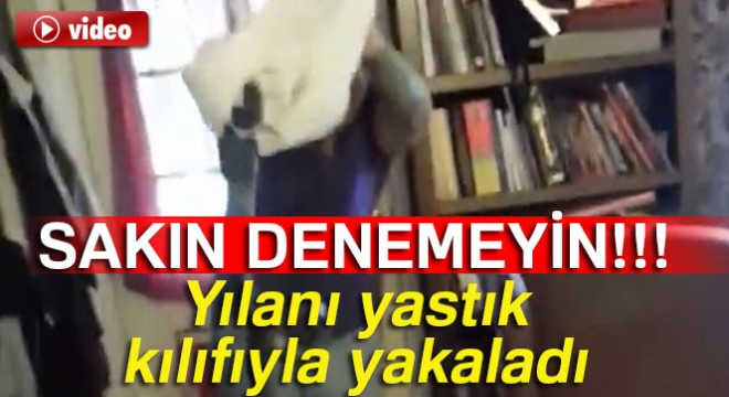 Yılanı yastık kılıfıyla yakaladı