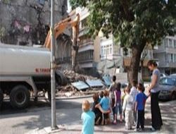Okulların tatil olması nedeniyle günlerin sokakta oynarak geçiren çocuklar da hiç bir güvenlik önleminin alınmadığı bölgede yıkım izliyor. Sokak sakinleri yaklaşık bir haftadır süren çalışmaların yaptıkları uyarılara karşın emniyet şeridi çekilmeden sürdürüldüğünü savunuyor. Yıkım çalışmasını yürüten ekipler de çalışma alanını tribüne dönüştüren meraklı gözlerden şikayetçi.