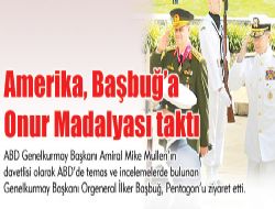 Genelkurmay Başkanı Orgeneral İlker Başbuğ’a ABD Savunma Bakanlığı (Pentagon) onur madalyası verildi. ABD Genelkurmay Başkanı Amiral Mike Mullen’ın davetlisi olarak ABD’de temas ve incelemelerde bulunan Org. Başbuğ, dün Pentagon’u ziyaret etti. Org. Başbuğ, burada askeri törenle karşılandı. ABD Savunma Bakanlığı’nda düzenlenen törende, Org. İlker Başbuğ’a bir onur madalyası takdim edildi. Başbuğ’un, bu hafta boyunca temaslarını devam ettirmesi bekleniyor. Bu arada, ABD’de bulunan Milli Savunma Bakanı Vecdi Gönül de Pentagon’da, ABD Savunma Bakanı Robert Gates ile bir araya geldi. Gönül, Pentagon’a gelişinde, nehir tarafındaki giriş kapısında askeri kordonla karşılandı.