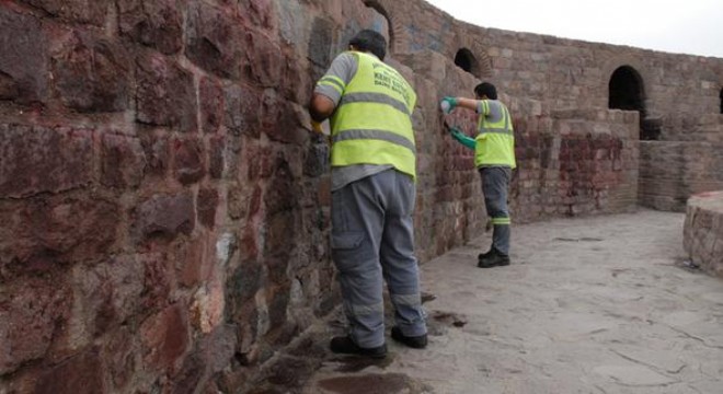 Büyükşehir Belediyesi Kent Estetiği Daire Başkanlığı’na bağlı ekipler sprey boyalarla yazılmış yazılarla dolu kale surlarını saf aseton boya sökücü buhar makinesi ve kimyasal bir sıvı kulllanılarak temizliyor. Turizminin gözbebeği Ankara Kalesi’ndeki çalışmaların turist sayısının artacağı yaz ayları başlamadan tamamlanması planlanıyor.