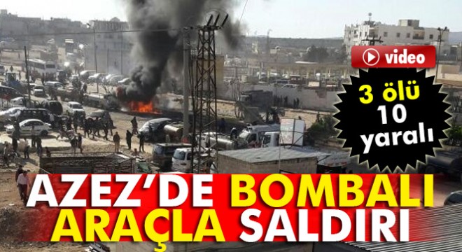 Suriye'nin Halep kentine bağlı Azez ilçesinde terör örgütü DEAŞ tarafından bomba yüklü araçla düzenlenen saldırıda 3 kişi öldü, 10 kişi yaralandı. Yaralılardan 3’ü ambulansla Kilis Devlet Hastanesine kaldırıldı.