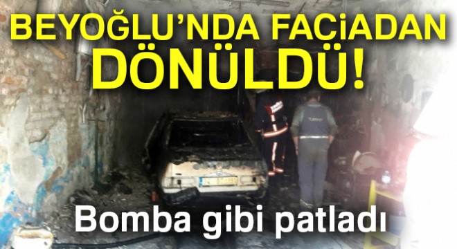 Beyoğlu’nda LPG’li arabanın egzoz borusuna kaynak yapılırken kaynak makinesine bağlı oksijen tüpü patlayınca facianın eşiğinden dönüldü. Patlamanın etkisi ile araç ve dükkan kullanılmaz hale gelirken olayda can kaybı yaşanmadı.