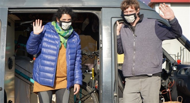 Koronavirüs salgını çıktığında birçok ülkenin teker teker sınır kapılarını kapatarak sert tedbirler almaya başladığını söyleyen Nina Duczmalewska, “Geri dönmeye karar verdiğimizde bisikletle geri dönmek istemedik. Koronavirüs salgınından dolayı korktuk açıkçası. Karavan bulabiliriz düşüncesiyle internet sitelerinde karavan bulduk. Şanslıyız ki Çekya’dan bir kişi, karavanıyla dünyayı gezerken Gürcistan’da salgına yakalanmış. O da karavanını orada bırakıp ülkesine uçmuş. O da bizim Facebook’taki gönderimizi gördüğünde sevinmiş. Biz şimdi onun karavanıyla Fransa’ya gideceğiz. O da Fransa’ya uçakla gelip, karavanını alıp ülkesine geri dönecek” dedi.