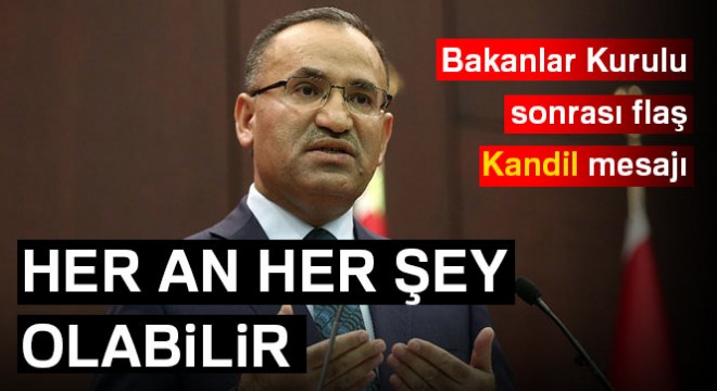 Türkiye’nin bundan sonra da Kandil’e girebileceğini, her an her şeyin olabileceğini vurgulayan Bozdağ, “Irak’ın kuzeyinde TSK, terörle mücadele nedeniyle bulunmaktadır. 11 ayrı yerde Türkiye’nin bildiğiniz gibi askeri birlikleri var. Kandil’den ve Irak’ın kuzeyinden Türkiye’ye PKK’lı teröristlerin geçişini önlemek ve Türkiye’ye yönelik terör tehditlerini Türkiye’nin sınırları dışında etkisiz hale getirmek için oradalar. Nerede terörist varsa, nerede Türkiye’ye dönük tehdit varsa orası Türkiye için hedeftir. Türkiye, hem Türkiye’nin içinde hem de Türkiye’nin dışında Türkiye’ye dönük bütün terör tehditlerini kaynağında imha etme kararlılığındadır. Artık taarruz politikasını hem içeride hem dışarıda uygulama kararlılığındayız ve uyguluyoruz da. Kandil’in terör örgütünün bir merkezi olduğunu bilmeyen yok. Oradan Türkiye’ye terör ihraç edildiğini hepimiz biliyoruz, Türkiye’deki terörün oradan yönetildiğini de biliyoruz. Kandil’e daha önce defalarca Türkiye yaptı. Bundan sonra da Kandil dahil Türkiye’ye dönük her türlü teröristin ve terör tehdidinin olduğu yere Türkiye’nin operasyon yapma hakkı mahfuzdur. Kandil’e Türkiye bundan sonra da girebilir, her an her şey olabilir” ifadelerini kullandı.