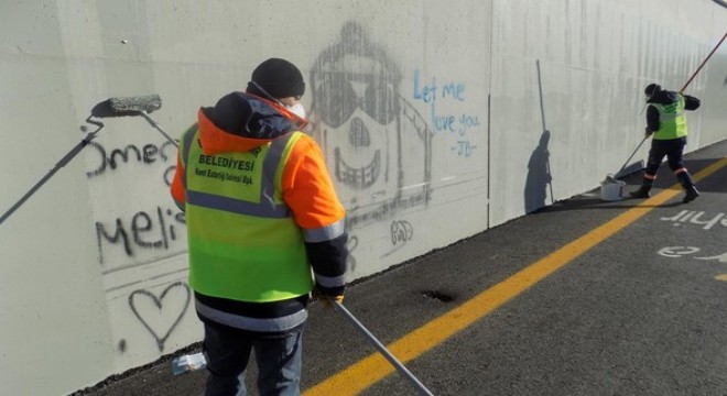 Büyükşehir Belediyesi’nden yapılan açıklamada, Kent Estetiği Dairesi Başkanlığı’nın okul duvarlarına, kamu binalarına, tarihi eserlerin bulunduğu alanlara, köprülere, yaya üst ve alt geçitlerine, yol kenarlarındaki duvarlar gibi yerlere sprey boyayla yazılan yazıları ve şekilleri silmek için her gün onlarca adreste çalışma yaptığı vurgulandı.