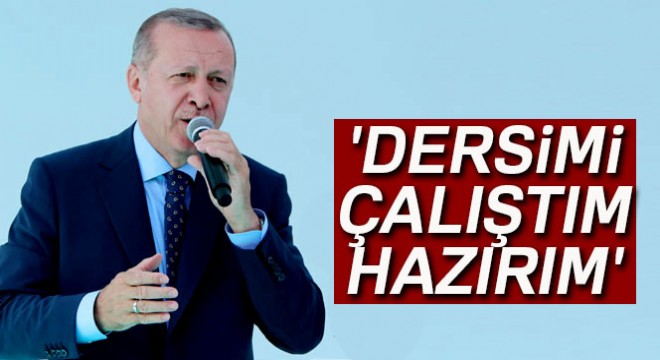 Dersini iyi çalıştığını söyleyen Erdoğan, “Yeni dönemde kararları daha hızlı şekilde alabileceğimiz, daha etkin şekilde uygulayabileceğimiz araçlara sahip olacağız. Dersimi iyi çalıştım, hazırım. 25 Haziran’dan itibaren hazırlıklarımızla meydana çıkacağız. Aldığımız ve alacağımız tedbirlerle piyasalara kasıtlı olarak pompalanan o karamsarlık havasını seçime kalmadan dağıtacak ve yolumuza kararlılıkla devam edeceğiz” dedi.