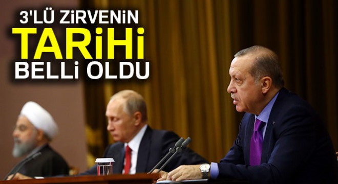 Suriye konulu Üçlü Zirve Cumhurbaşkanı Recep Tayyip Erdoğan ve Rusya Federasyonu Devlet Başkanı Vladimir Putin'in yanı sıra İran Cumhurbaşkanı Hasan Ruhani’nin de katılımıyla, 4 Nisan Çarşamba günü Ankara’da gerçekleştirilecek.
