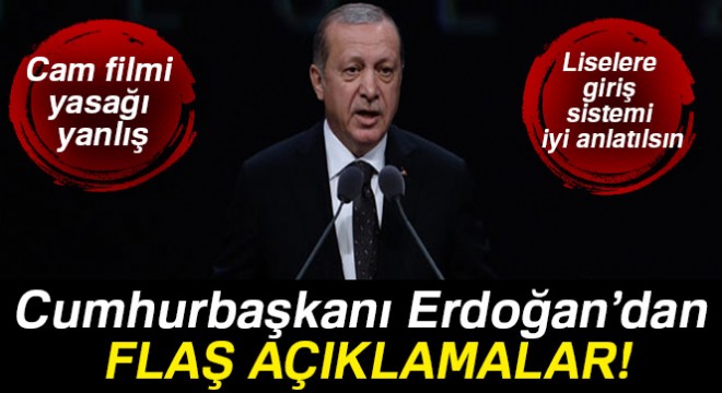 Cumhurbaşkanı Recep Tayyip Erdoğan, araçlardaki cam filmi yasağıyla ilgili, "Yasak yanlış. Mağduriyet olmamalı. Gerekli düzenlemenin yapılması için talimat verdim" dedi.