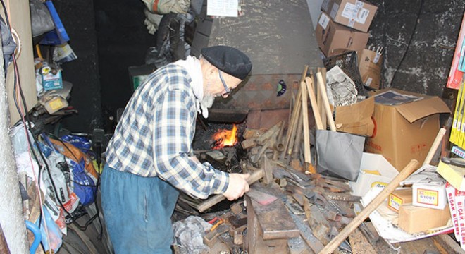 Giresun’un Görele İlçesinde 60 yıllık demirci ustası Mustafa Çolak, yaklaşık 60 derece sıcaklıktaki ateşte balta, girebi, orak, kazma, tırpan gibi tarım aletleri yaparak hem geçimini sağlıyor hem de dede mesleğini sürdürüyor.