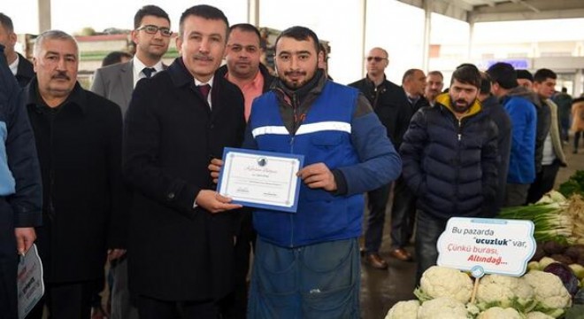 Etkili iletişim, stres yönetimi ve beden dili konularında 5 gün süren eğitim seminerine katılan esnaf, düzenlenen törenle sertifikalarını aldı. Eğitim seminerinin son gününde, kişisel gelişim uzmanı Adem Karafilik tarafından verilen son dersi başarıyla tamamlayan katılımcılar, Şair Baki Kültür Merkezi’nde düzenlenen törende bir araya geldi. Törene, Ankara Pazarcılar Esnaf Odası Başkanı Recep Ayhan da katıldı. Törenin ardından Ali Ersoy Semt Pazarı’na geçen esnaf, tezgâhlarındaki döviz ve pankartlar aracılığıyla müşterilerine hoşgörü mesajı verdi. Yıllardır pazarcılık yapan Mustafa Ataş “Uzun yıllardır pazar esnafıyım. Hiç böyle bir eğitim almadık. Müşterilere davranışımıza ya da hitap şeklimize dikkat etmezdik. Nasıl edeceğimizi de bilmiyorduk. Ama öğrendim ki, çok önemliymiş. Bundan sonra empati yapacağız. Daha dikkatli olacağız” dedi.
