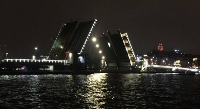 Galata ve Atatürk köprüleri saat 02:30’dan 03:30’a kadar deniz trafiği açılması nedeniyle yaya ve araç trafiğine kapatıldı. Yolun iki taraflı açılması renkli görüntüler oluşturdu.