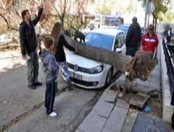 ANKARA / Saat 10.30 sularında kökünden kopan ağaç, yol kenarına park etmiş iki otomobilin üzerine devrilerek maddi hasara neden oldu. Kazada şans eseri kimse yaralanmadı. Olay yerine gelen polisler, devrilen ağaç yüzünden kapanan Hoşdere Caddesi’ndeki araçları diğer yollara yönlerdirdi. Büyükşehir Belediyesi ekipleri de devrilen ağacı iş makinalarıyla kaldırdı.