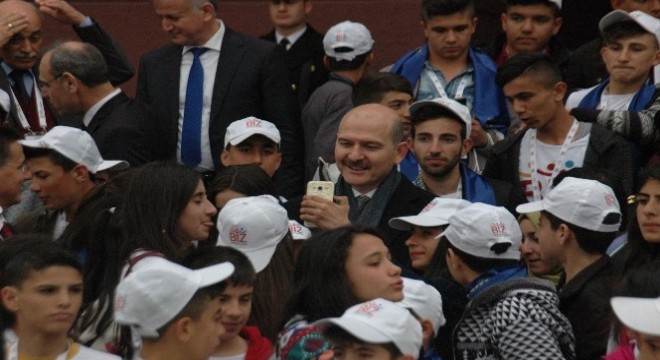 Cumhurbaşkanı Recep Tayyip Erdoğan’ın eşi Emine Erdoğan’ın başlattığı “Biz Anadoluyuz Projesi” kapsamında dün Mardin’den Ankara’ya gelen yaklaşık 200 ortaokulu öğrencisi, bugün İçişleri Bakanı Süleyman Soylu’nun misafiri oldu. Bakan Soylu öğrencileri Bakanlığın Anadolu Yemek Salonu’nda düzenlenen sabah kahvaltısında misafir etti. Öğrencilerle birlikte kahvaltı yapan Bakan Soylu, "Anadolu medeniyetimizin en özellikli ve en güzel yerlerinden birisi olan tarihin birçok anlamını farklı anlayışlarını ve farklı yaşam biçimlerini farklı kültürlerini bir arada bulunduran ama bütün bunların üzerinde en önemli özelliği, bir arada nasıl yaşanabileceğini en güzel gösteren şehirlerden birisi olan Mardin’den buraya gelen çok kıymetli kardeşlerim, Başkent’te ve Bakanlığımızda olmanızdan büyük bir mutluluk duyuyorum. Sizin bir arada olmanız yüzünüzün gülmesi, neşeniz ve sevinciniz aslında bizlere de yaşama sevinci veriyor. Bundan 5 ay önce Mardin’den gelen arkadaşlarımızla yine burada buluşmuştuk. Bizim işlerimiz zor ve sıkıcı işlerdir. Sorunların çözümleri için çalışırız. Stresli ve gergin işlerimiz var. Bizler bu şekilde çalışıyoruz. Tüm insanlığın amacı sizleri mutlu görebilmektir. Gelecek nesillerimizin daha sağlıklı vatanda daha güzel bir anlayış içerisinde olmasının temin edilmesidir. Sizin bu neşeli görüntünüz olmasa dünya yaşanabilir bir yer olmazdı. Biz Anadolu Projesi’nin birçok nedeni var. Sizlere de birçok faydası var. Ülkemizi tanıyorsunuz. Yeni arkadaşlar ediniyorsunuz. Yeni yerler görüyorsunuz. Fakat bu projenin en temel amacı sizlerin mutlu olmasıdır. Biz bütün çocuklarımızın mutluluk patlaması yaşamasını istiyoruz. ‘Biz Anadolu’yuz’ projesini bu sebepten hayata geçirdik. Çok olumlu geri dönüşler aldık. Bizlerle bir arada olduğunuz için sizlere teşekkür ediyorum" ifadelerini kullandı.