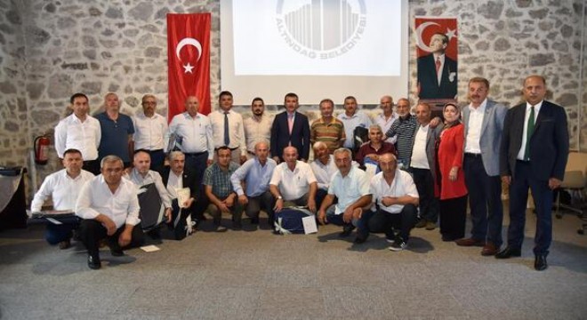Altındağ Belediye Başkanı Asım Balcı, muhtarlara bilgisayar hediye etti.