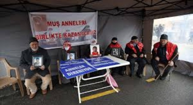 Muş'ta, terör örgütü PKK tarafından çocukları kaçırılan aileler, DEM Parti İl Başkanlığı önündeki eylemlerine devam etti.