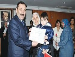 İngilizce, ebru, okuma-yazma, bilgisayar branşlarında gerçekleştirilen kursları başarıyla tamamlayan hanımlara kurs bitirme belgelerini Etimesgut Belediye Başkanı Enver Demirel verdi.