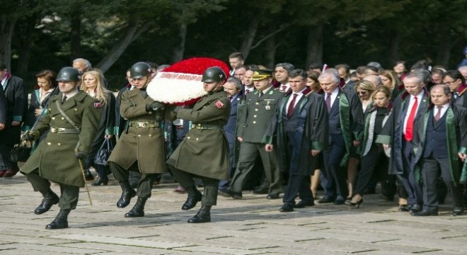 TBB Başkanı Feyzioğlu ve beraberindekiler, Ahmet Taner Kışlalı Spor Salonunda yapılacak olan “Söz Savunmanın” toplantısı öncesinde Anıtkabir’e geldi. Aslanlı Yol’dan yürüyen heyet, Mustafa Kemal Atatürk’ün mozolesine geldi. Feyzioğlu’nun mozoleye çelenk koymasının ardından saygı duruşunda bulunan heyet, daha sonra Anıtkabir önünde fotoğraf çektirdi.