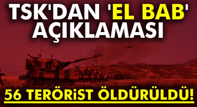 TSK, Fırat Kalkanı Harekatı’nda 23 Şubat 2017 günü saat 07.00’ye kadar meydana gelen gelişmeler hakkında açıklamada bulundu. Açıklamada muhalif unsurlardan oluşan özel görev kuvvet grupları tarafından karadan ve havadan yapılan yoğun ateş desteği ile El Bab’ın DEAŞ terör örgütü mensuplarından temizlenmesine yönelik planlı harekatın icrasına devam edildiği, iki mahallede daha kontrolün sağlandığını bildirdi.