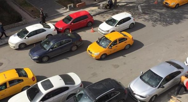 Tunus Caddesi’nde 5 şeritli yolun 4 şeridi park halindeki araçların, kaldırımlar ise esnafın koyduğu masa ve sandalyenin işgali altında.