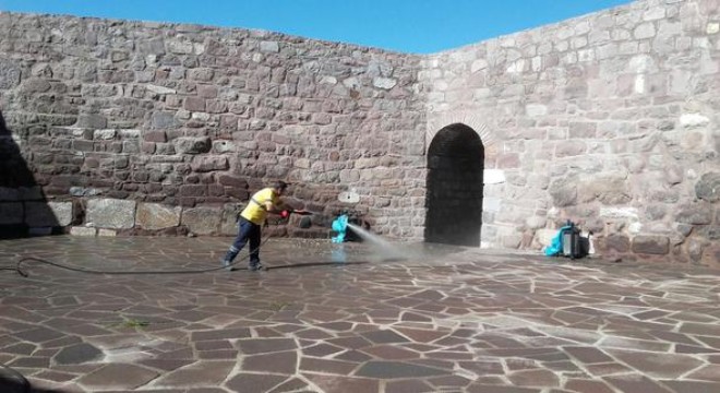 Hürriyet Ankara’nın defalarca gündeme getirdiği kaledeki yüz kızartan manzara, Büyükşehir Belediyesi temizlik ekipleri tarafından silinmeye çalışılıyor. Belediye ekipleri, kent vandallarının sprey boyalarla duvarlarına sürekli yazı yazdığı Kale’de çevre temizliği yaptı, burçların duvar ve merdivenlerini, gözetleme kulelerini, taşlara zarar vermeyen deterjanlı basınçlı suyla yıkadı. Yetkililer, ziyaretçilerin en çok ilgi gösterdiği burçlarda düzenli olarak temizlik yapıldığını ve dezenfekte edildiğini kaydetti.