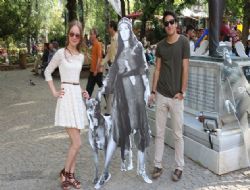 ANKARA / Türk sinemasının unutulmaz yıldızları Türkan Şoray, Kartal Tibet, Cüneyt Arkın, Ahmet Mekin gibi büyük ustaların maketleri, vatandaşların ilgisine neden oldu. Yaşlısından gencine birçok Ankaralı sinemanın önemli isimlerinin görselleriyle fotoğraf çektirmek için birbirleriyle yarıştı. Türk sinemasının yıldızlarının görselleri Başkent sokaklarının ardından Kızılay Büyülü Fener Sineması fuayesinde de görülebilecek. ANKARA /